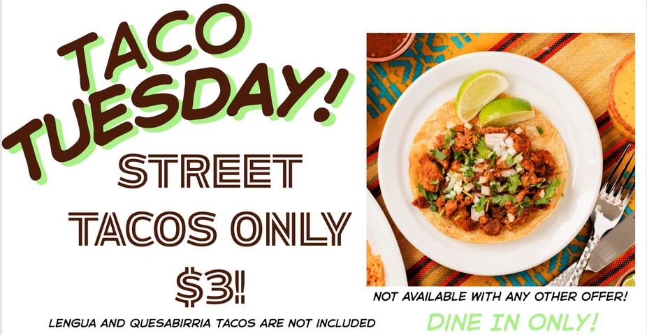 TACO TUESDAY 🌮🎉 Street Tacos just $3 each—today only! Dine-in only. Not valid with other offers. Lengua & Quesabirria not included. Bring the crew to Jose’s Authentic Mexican Restaurant – Wisconsin Dells and let’s taco ’bout dinner! Tag a friend who owes you tacos 👇