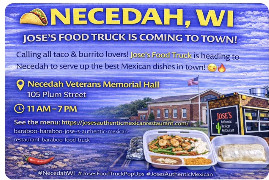 🌮🚚 Necedah — Jose’s Authentic Mexican Food Truck is headed your way!