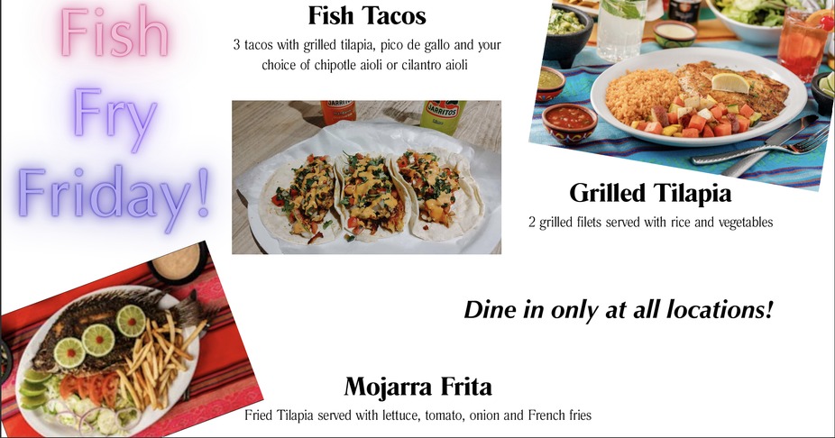 👉 A José’s-style Fish Fry Friday served with bold flavor and zero regrets. Swing by any José’s location tomorrow and dive into: 🐟 Fish Tacos — grilled tilapia + pico + your choice of chipotle or cilantro aioli 🔥 Grilled Tilapia — 2 filets with rice & veggies 🐠 Mojarra Frita — whole fried tilapia with fries & fresh toppings 📍 Available at ALL José’s locations