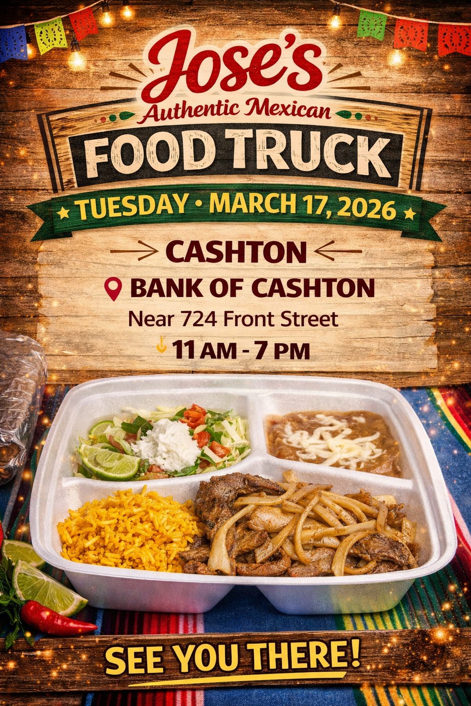 Jose’s Authentic Mexican Food Truck is rolling into town on Tuesday, March 17, 2026 and we’re bringing the flavor with us! Stop by Bank of Cashton near 724 Front Street and treat yourself to a delicious meal that’s fresh, hot, and full of authentic Mexican goodness.