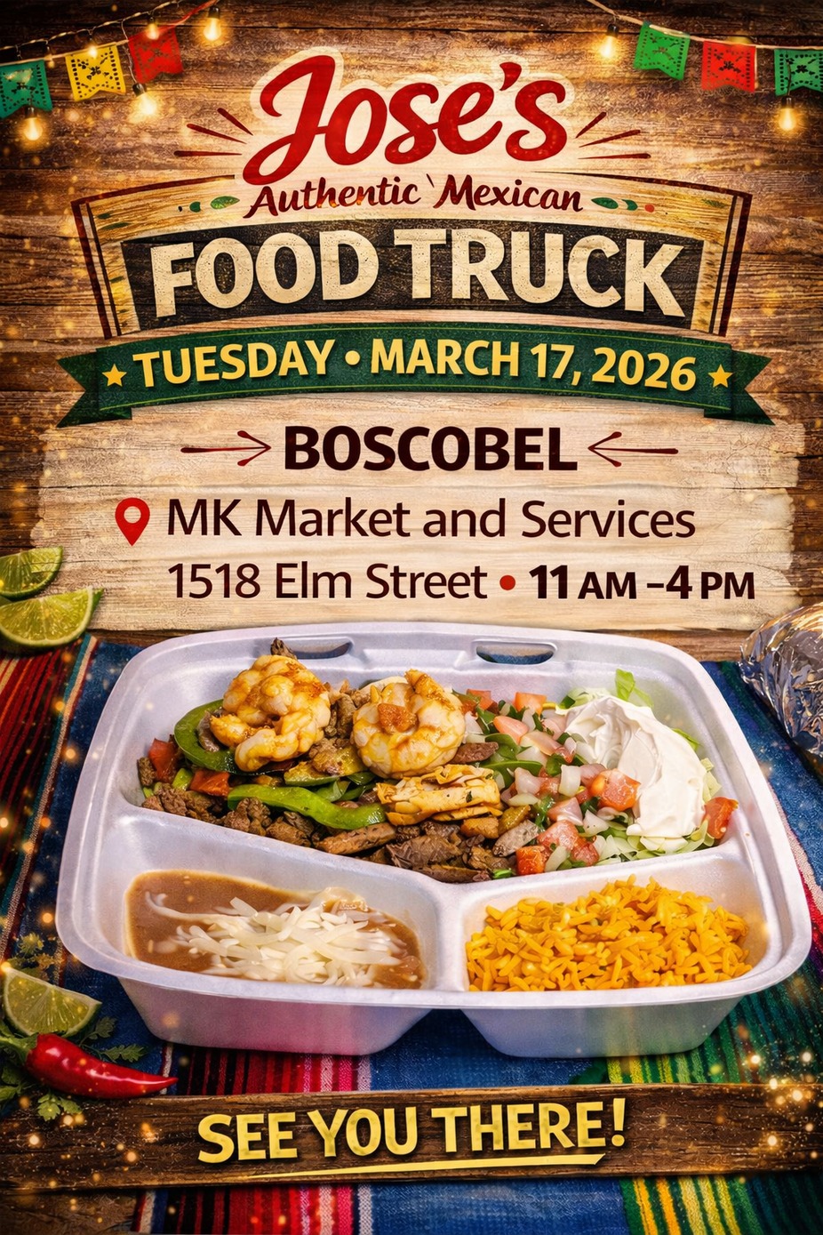 Make plans to stop by Jose’s Authentic Mexican Food Truck on Tuesday, March 17, 2026 at MK Market and Services for a fresh, flavorful meal made just for you! From your favorites to delicious authentic Mexican food that hits the spot, we’ll be serving up something tasty you won’t want to miss.
